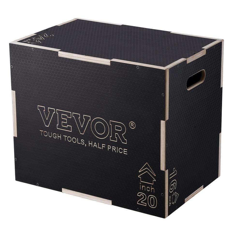 Black 3-in-1 1 Plyometric Jump Box 24/20/16 Inch Wooden Agility Training Step Box for Home Gym Strength Conditioning Anti-Slip