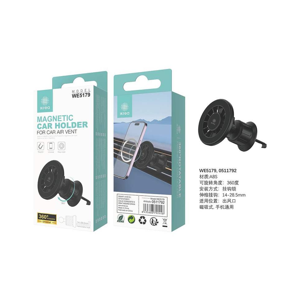 Black 360° Universal Magnetic Car Mount Holder with 14-28.5mm Telescopic Hook Auto Mobile Phone Holder Accessory