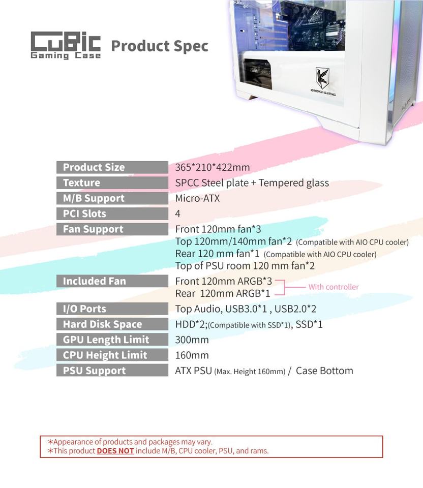 Fan (Installed):Front: ARGB 120mm *3 Rear: ARGB120mm*1