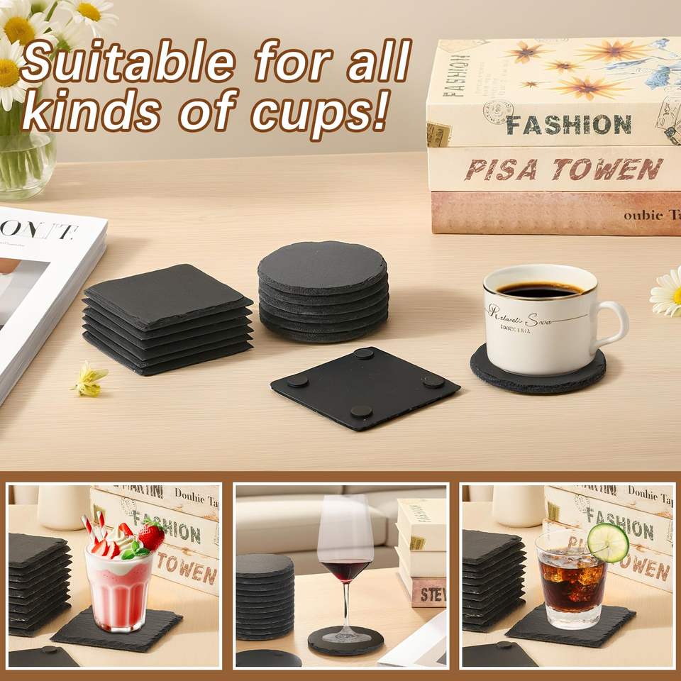 Black 4 Inch Slate Coasters Bulk Blank Rock Design with Laser Engraving Hand Painted DIY Scratch Resistant Bottom for Promotions