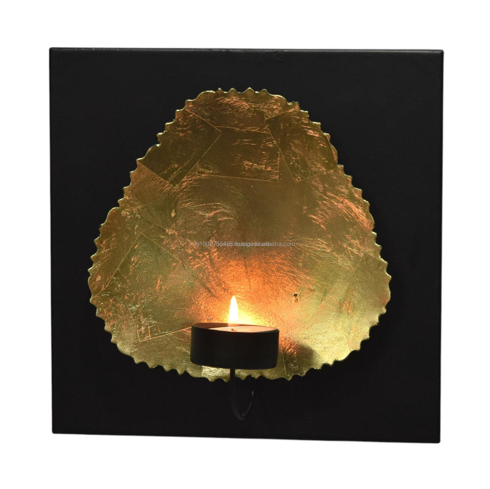 Wholesale Handmade Black Gold Metal Wall Sconce Lamp Tea Light Holder Christmas Home Decorative Lantern