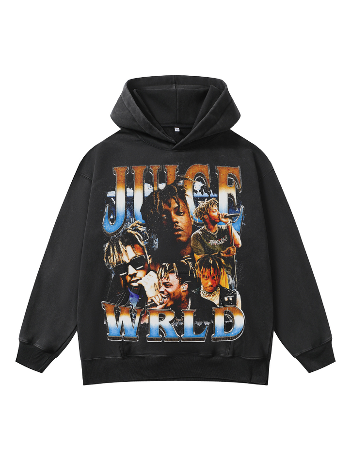 Black Anime Embroidered Hoodie Acid Wash Printed Oversized Streetwear Pullover Graphic Warm Fleece Casual Fashion Cotton Hoodie