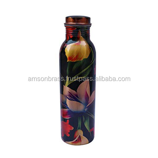 Decorative Water Copper Bottle Customized Black Background Flower Printed Copper Water Bottle Drinkware
