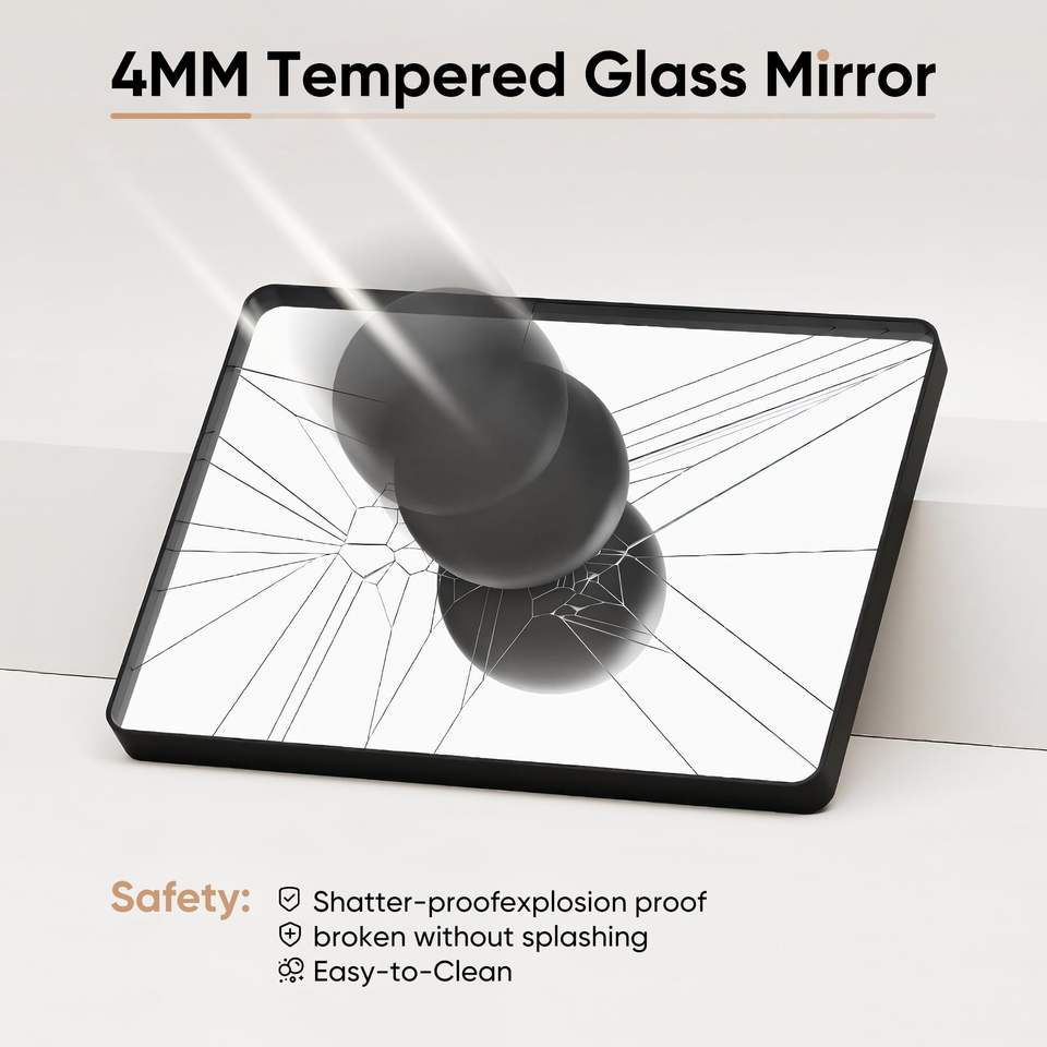 Black Bathroom Mirror , Black Metal Framed Mirror for Wall, Rounded Rectangle Matte Bathroom Vanity Mirror with Tempered Glass