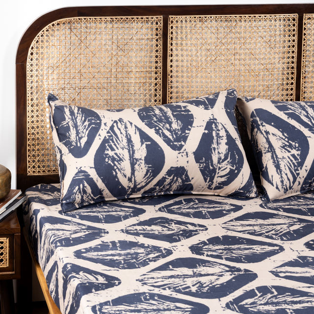 Black Beige Printed 300tc Eco-Friendly Cotton Flat Bed Sheet Set Double Bed 2 Pillow Covers Nature Style Home Bedding Wholesale