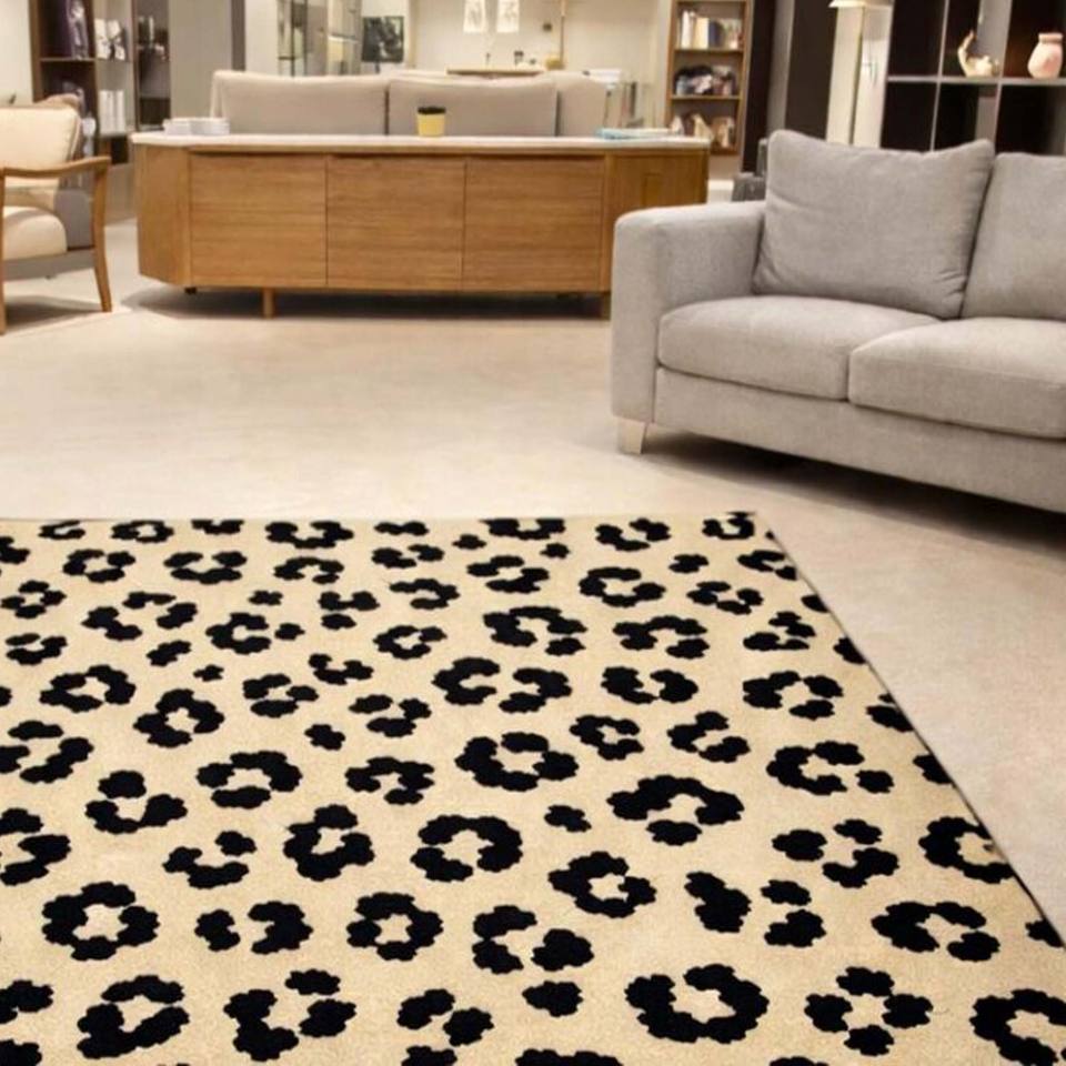 Black Beige Leopard Area Rug Modern Hand Tufted Animal Pattern Carpet for Large Living Room Bedroom Decorative Soft Floor Rug