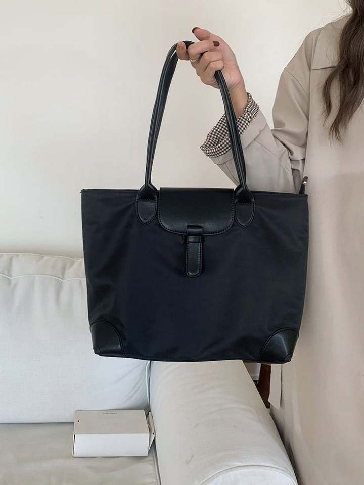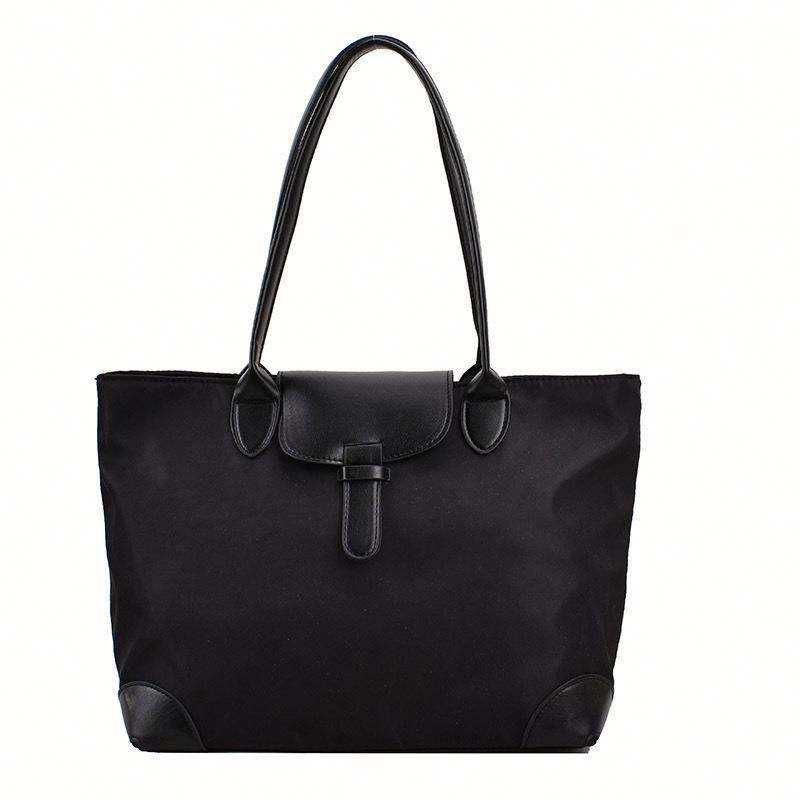 Black Belt Large Capacity Customizable Pattern Pure Color Shoulder Strap Simple Solid Color Canvas Bag with Pockets