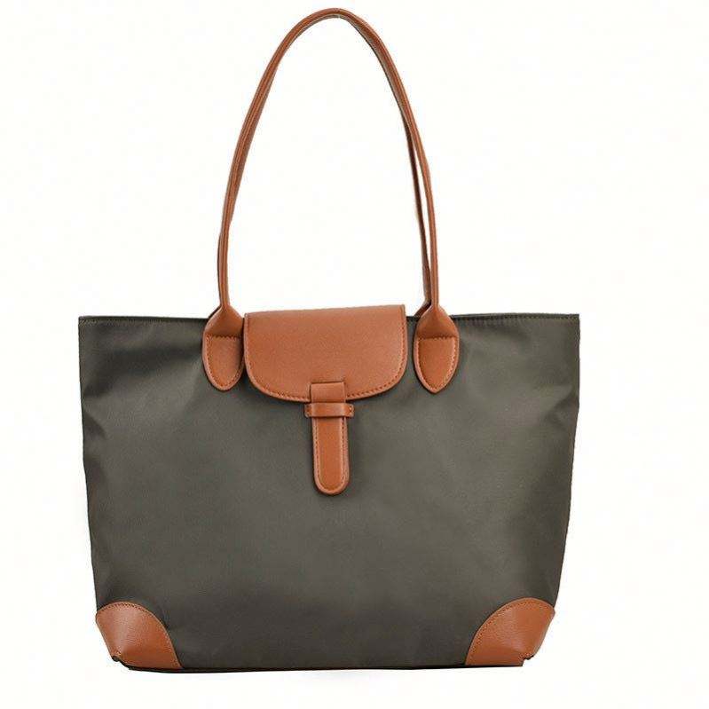 Black Belt Large Capacity Customizable Pattern Pure Color Shoulder Strap Simple Solid Color Canvas Bag with Pockets