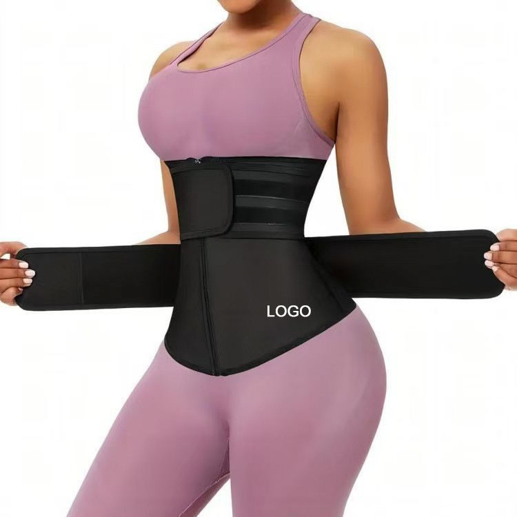 Black Big Size Latex Waist Trainer Cincher Double Belt Zipper Sauna Slimming Corset Body Shaper for Women Fitness