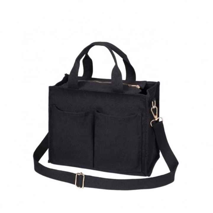 Black Blank Handbag Canvas Tote Bag for Women With Pocket Crossbody Shoulder Bag Casual Hobo Messenger Bag