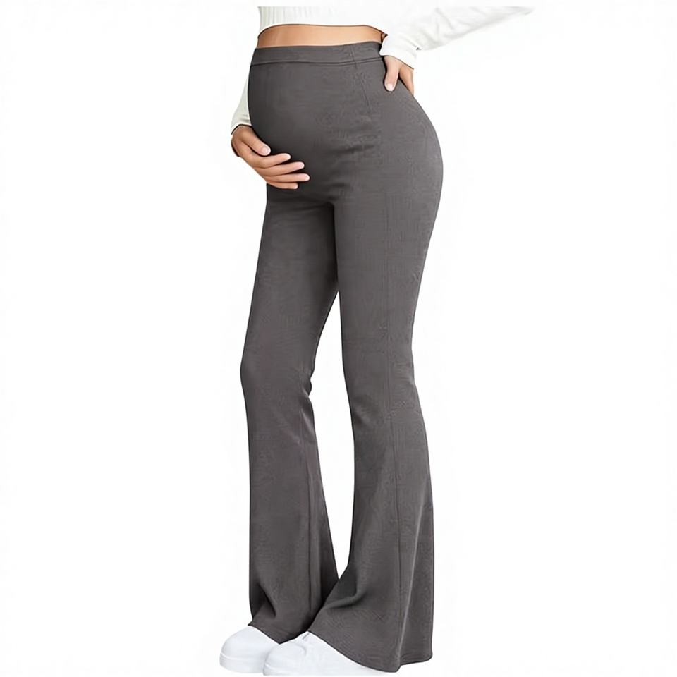 Black Blue Gray Brown Maternity Yoga Leggings with Cross Belly Support Belt High Waist Slim Flared European American Style