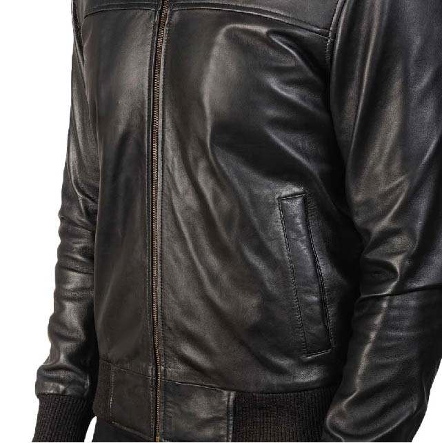Black Bomber Leather Jacket For Men With Premium Quality Stylish Fit Durable Material Winter Warmth AndComfortable Everyday Wear
