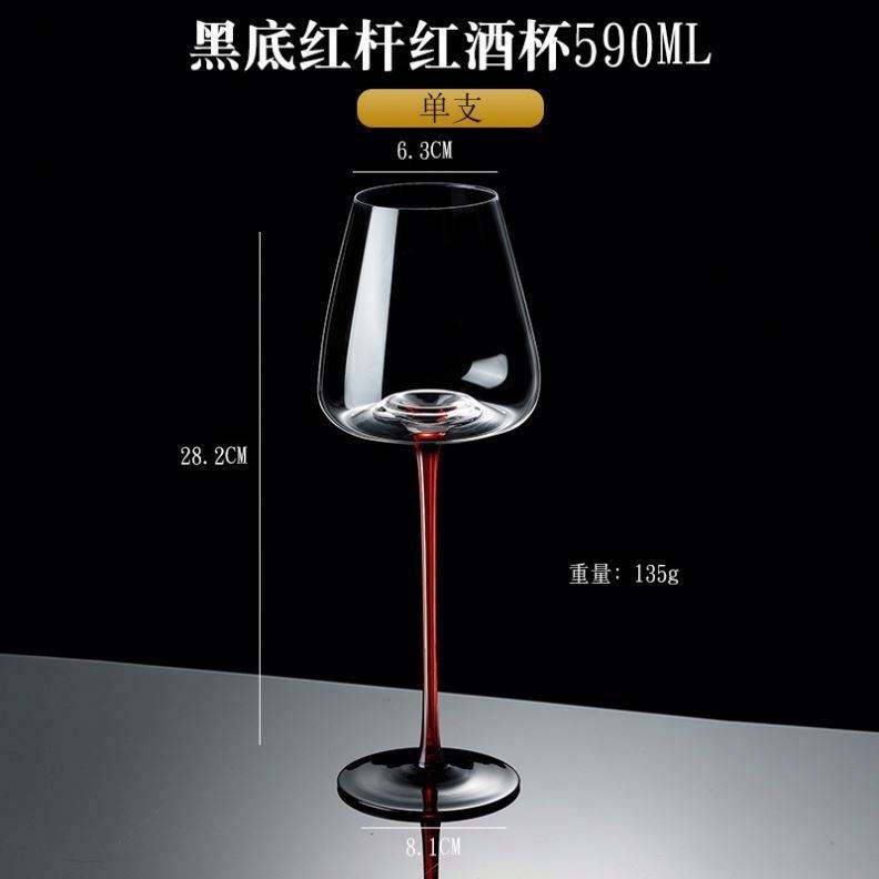 Black Bow Tie Crystal Wine Glass - Black Base & Red Stem Bordeaux Champagne Goblet for Weddings, Parties, Luxury Dining