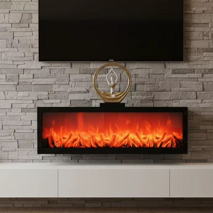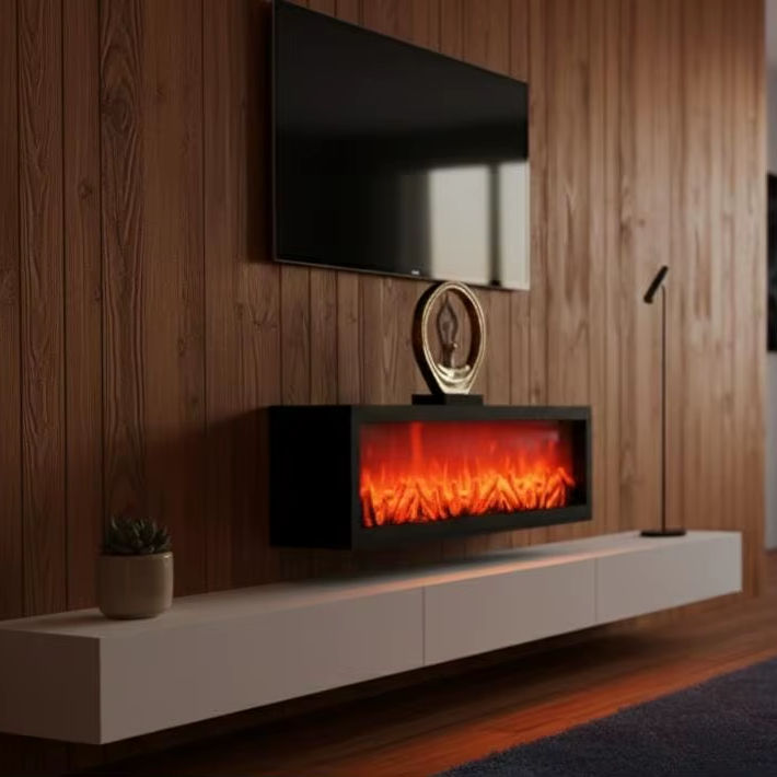 Black Box Electric Flame Ambient Fire Display | Contemporary Long Fireplace Accent Light | Sleek Mantle Fire Feature