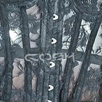 Black Breathable Mesh Steel Boned Overbust Floral Mesh Corsets