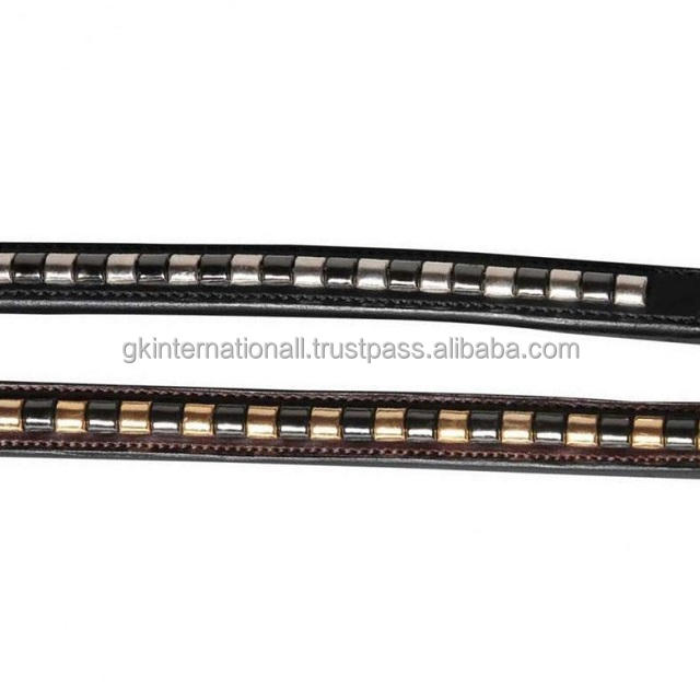 Black Brown Single Layer Thick Buffalo Leather Horse Brow Band with Decorative Metal Clincher & Snap Button Loop Closure