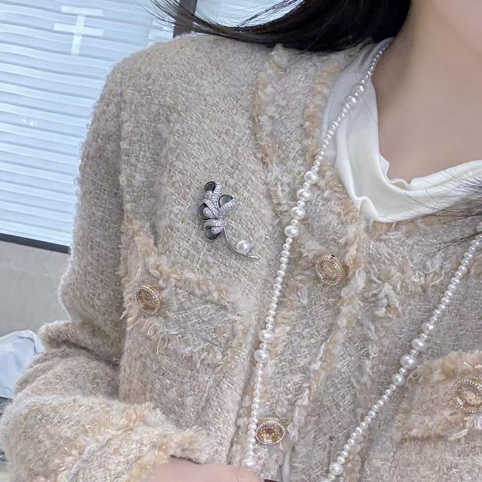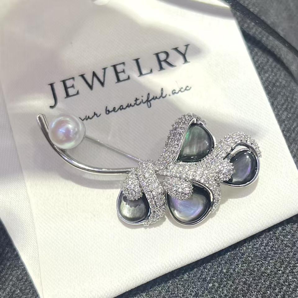 Black Butterfly and Fireworks Brooch with Freshwater Pearls Fashionable Neck Pin Decorative Chest Unique Bee Pattern