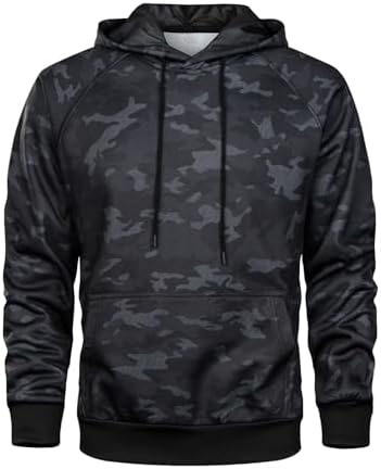 Black Camo Hoodies for Men Activewear Pullover Sweatshirt with Adjustable Drawstring Hood and Kangaroo Pocket Winter Streetwear