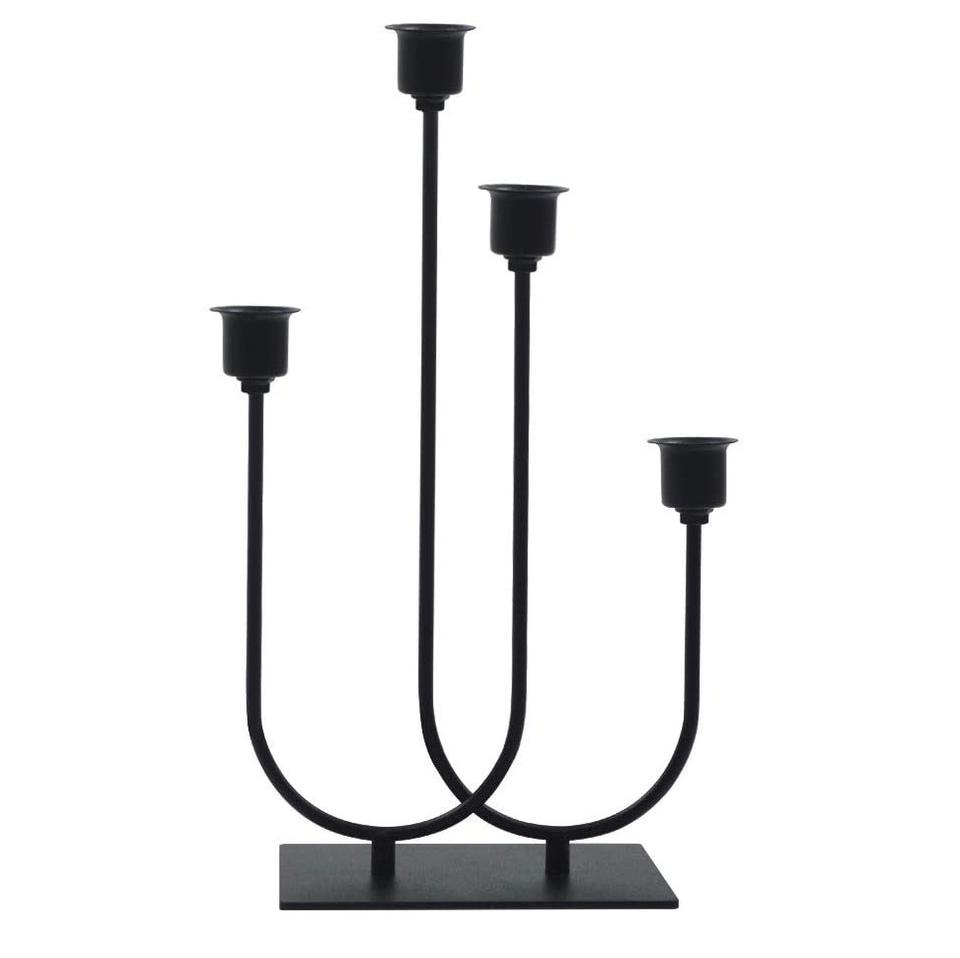 Black Candle Holder with Minimalist Cylindrical Stem and Round Platform Modern Accent for Table Decor