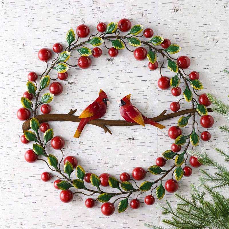 Black Cardinals and Berries Metal Wreath With Bird Design for Home Wedding Christmas Holiday Decor Wreath Hanger