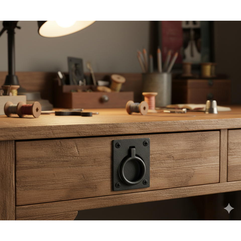 Black Cast Iron Recessed Flush Ring Pull Handle for Kitchen Cabinets Drawers Heavy Duty Eco-Friendly Vintage Industrial Hardware