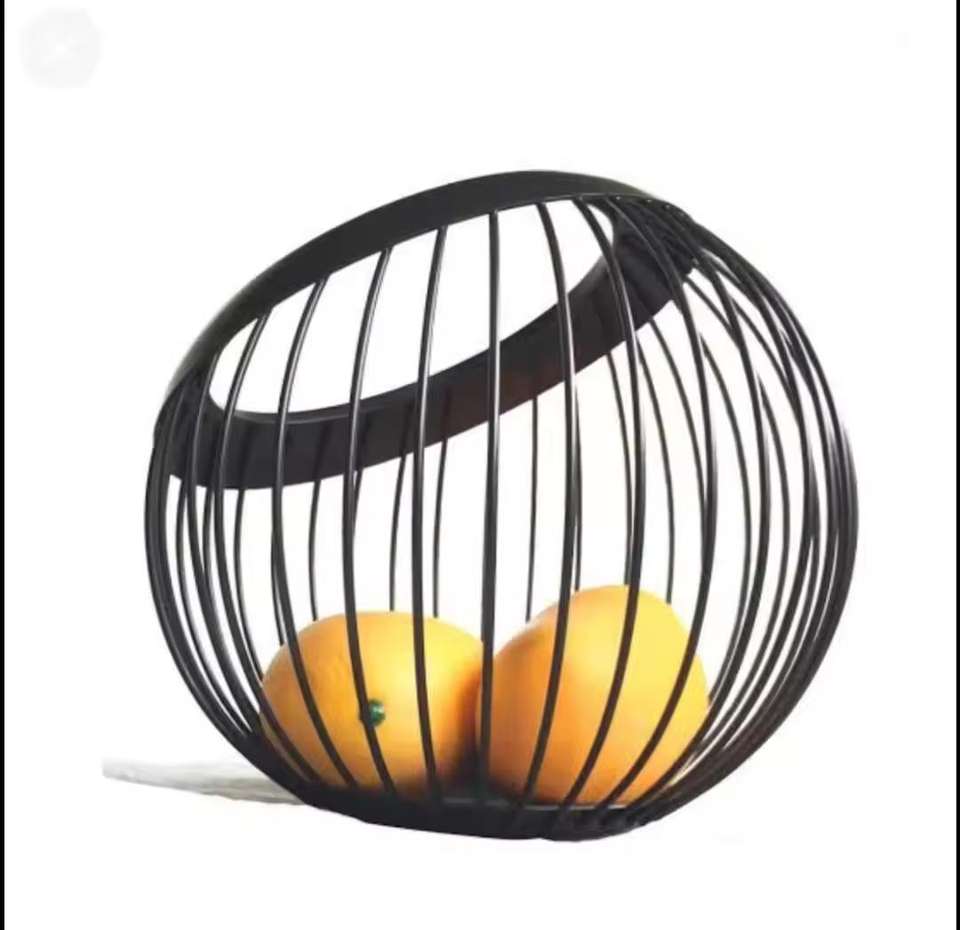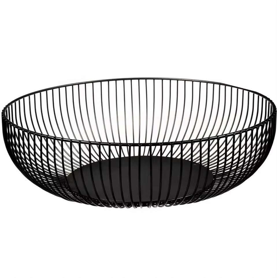 Black Coated Metal Fruit Basket Handmade Wire Design Storage Basket for Home Dining Table Fruits Containing Usage