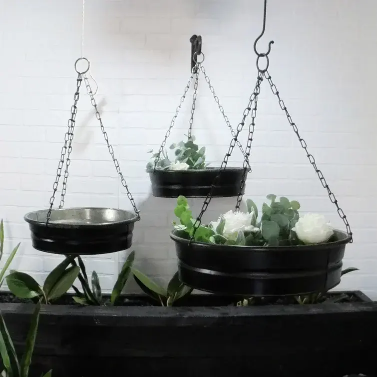High Quality Black Coated Metal Hanging Planter Modern Premium Indoor/Outdoor Home & Hotel Decor for Garden Application