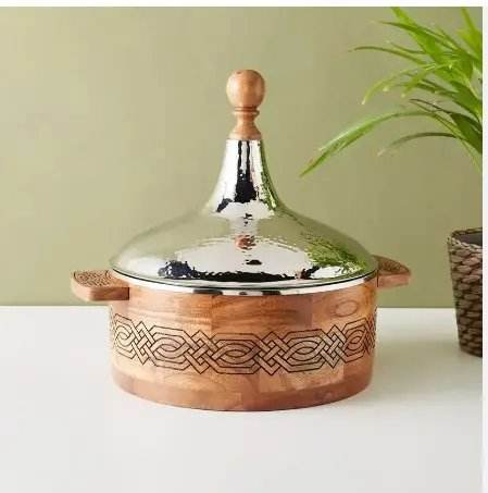 Black Coated Metal Hotpot With Wire Stand for Kitchenware Food Serving Decorative Pot Wedding Food Dish With Lid