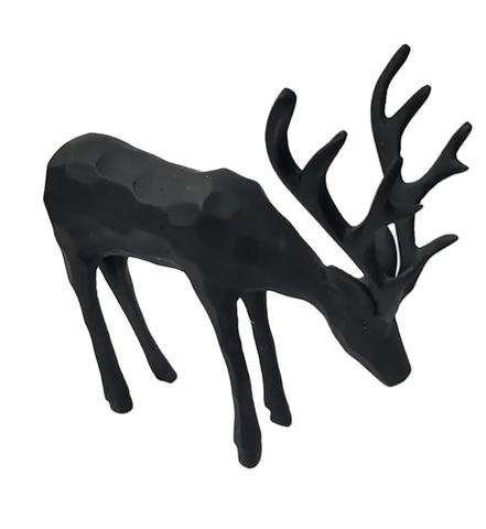 Black Coated Small Thanksgiving Modern Polished Metal Handmade Deer Figurine Sculpture Home Office Garden Decoration
