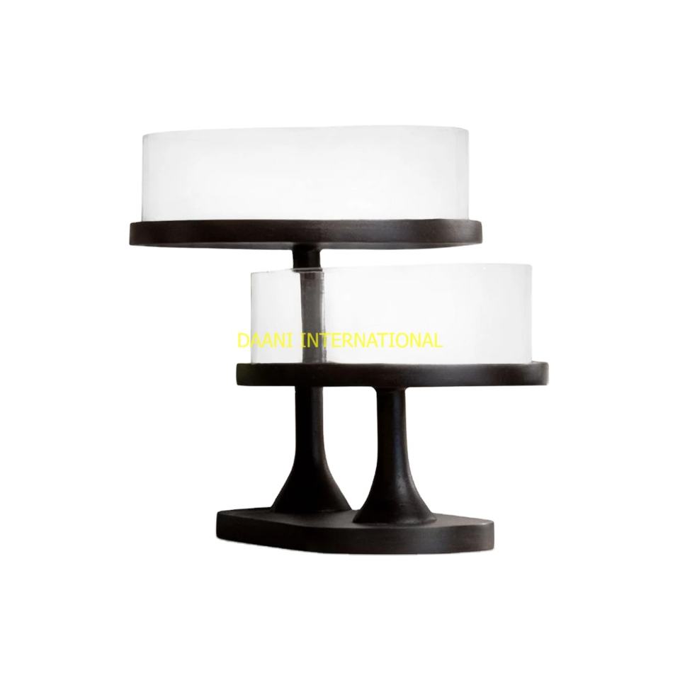 Black Coated Two Tier Metal Serving Cake Stand with Base and Round White Trays Birthday Cake Dessert and Appetizer Display Tool
