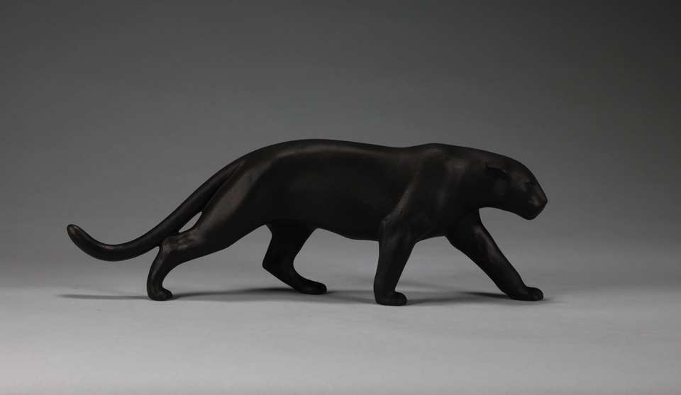 Black Color Coated Leopard Shaped Hard Metal Decorative Sculpture Tabletop Home Decor Item Office Living Best Accent