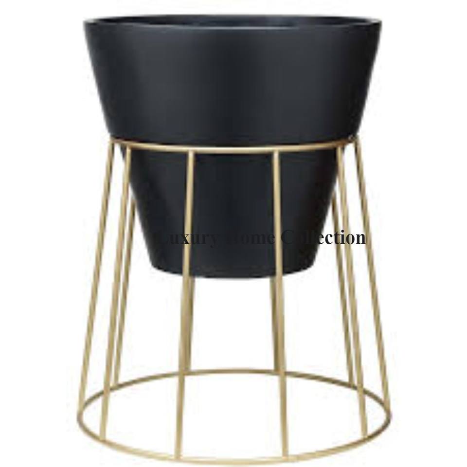 Fancy Black Color Decorative Flower Pot and Gold Color Iron Wire Made Frame and Stand Designer Fancy Look in Wholesale Price