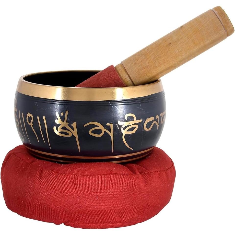 Black Color Handcrafted Tibetan Metal Singing Bowl for Meditation Healing Yoga Mindfulness with Wooden Mallet & Cushion