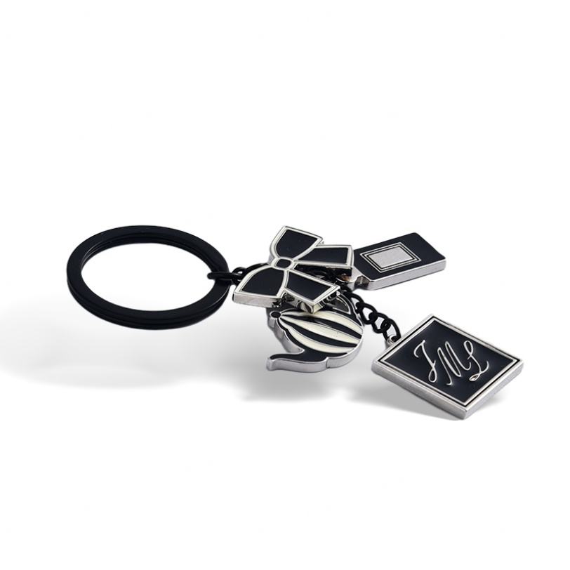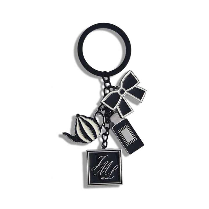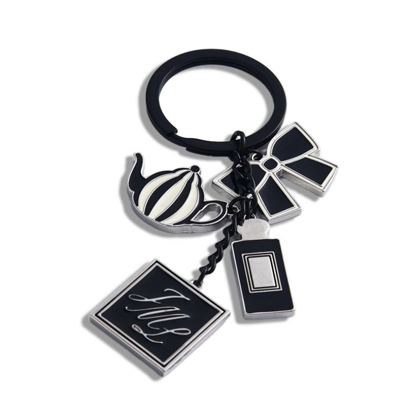 Black Color High End Style Soft Enamel Customized Design Set Bowknot Kettle Bear Bottle Custom Metal Keychain