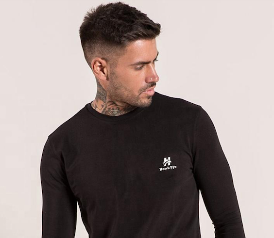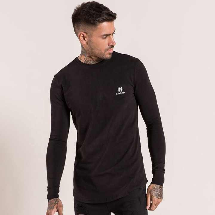 Black Color Long Sleeve Ribbed Cuff Curved Hem Men T-shirt High Quality 65% Polyester 35% Cotton 140gsm Black Colour t Shirts