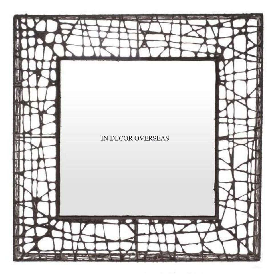 Black Color Powder Coated Unique Fancy Designer Heavy Duty Metal Framed Square Shape Wall Mirror Home Decorative Supplies