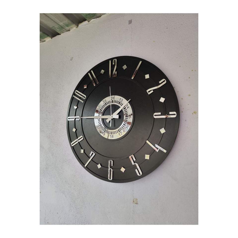 Black Color Silver Number Wooden Decorative House Gift Wall Clock 50cm Different Pattern for Home or Office