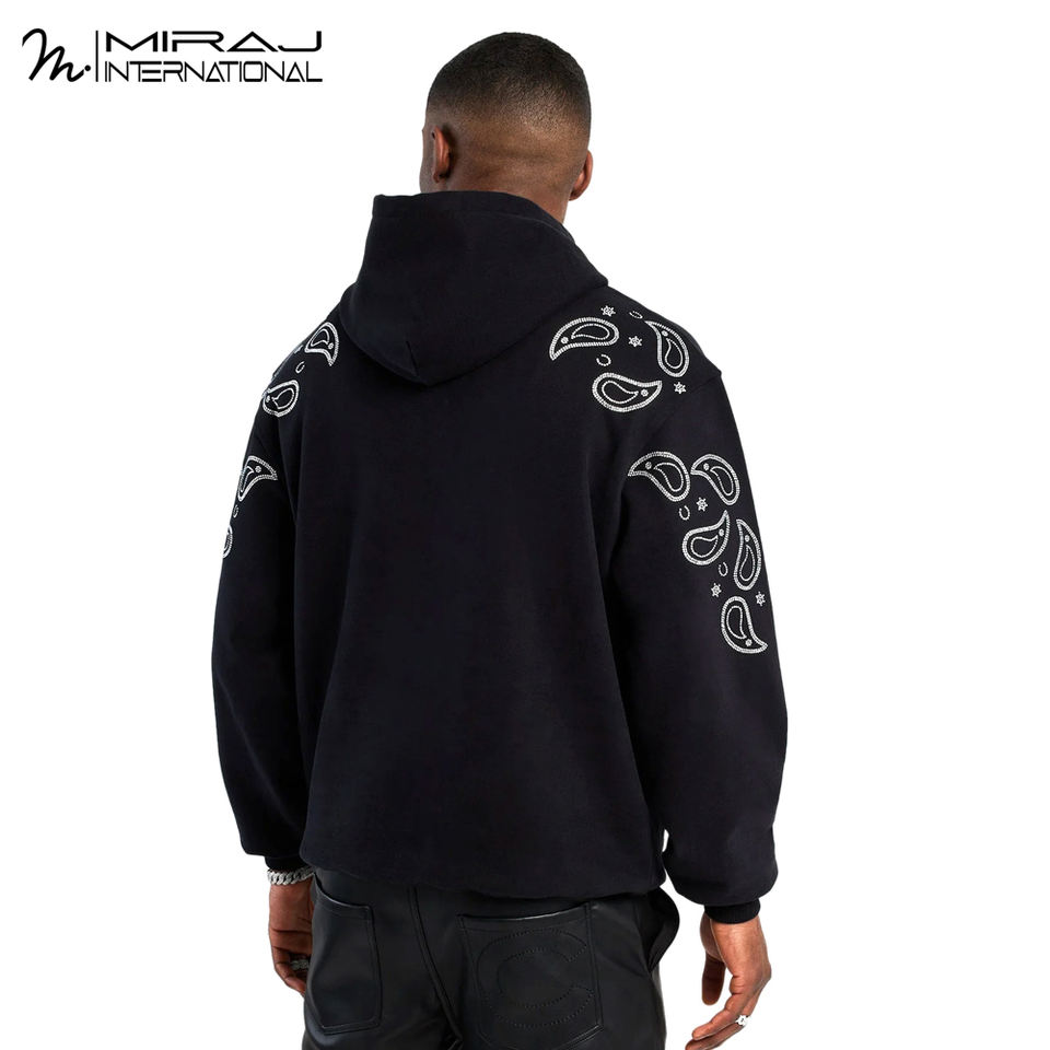 Latest Style Men's Lightweight Windproof Hoodie Black Soft Stylish Street Wear Zipper Rhinestone Handmade Outer Wear for Autumn