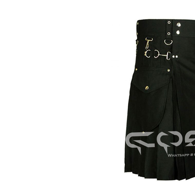 Black Cotton Utility Kilt With Adjustable Straps Tactical Pockets and Durable Design for Versatile and Stylish Everyday Wear