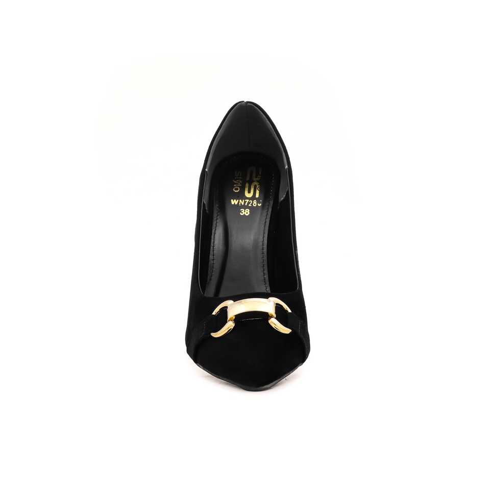 Women's Pointed Toe Stone Evening Dress Slippers & Shoes Real Leather PL 984121 Black