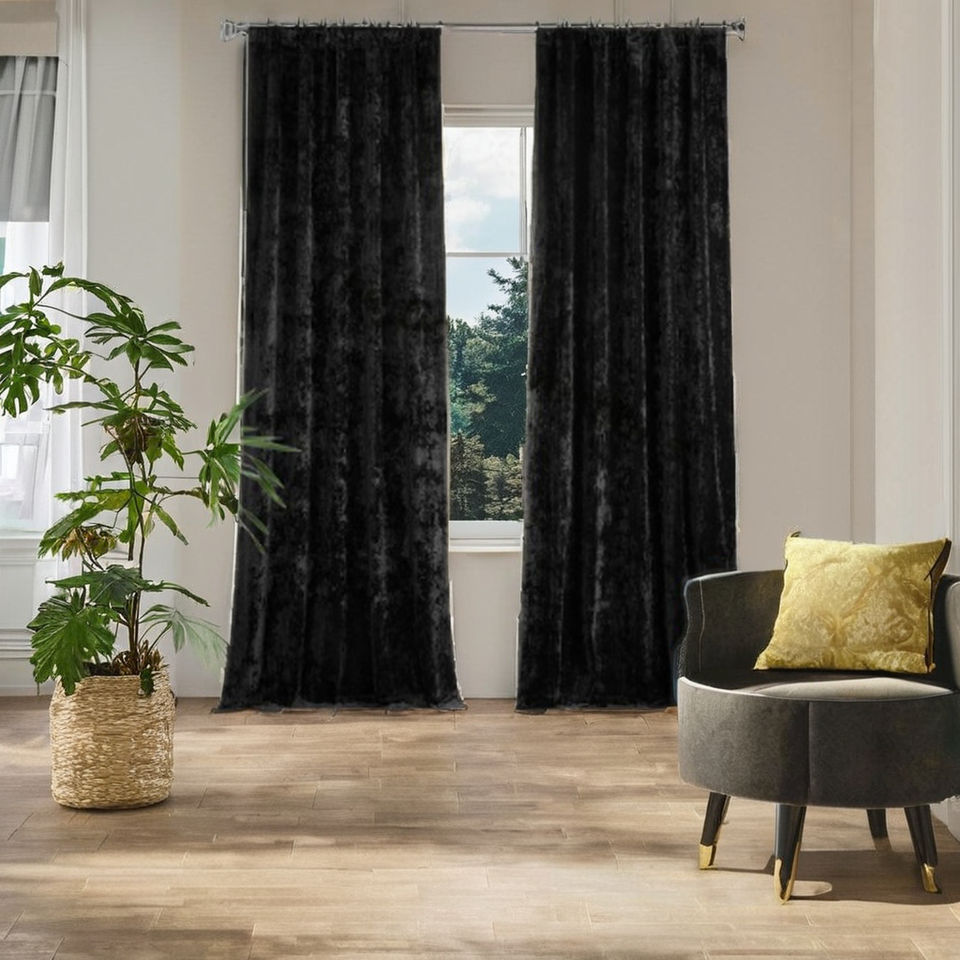 Black Crushed Velvet Rod Pocket Modern Customizable Curtain Bedroom Blackout Room Darkening Living Room Privacy Christmas Decor