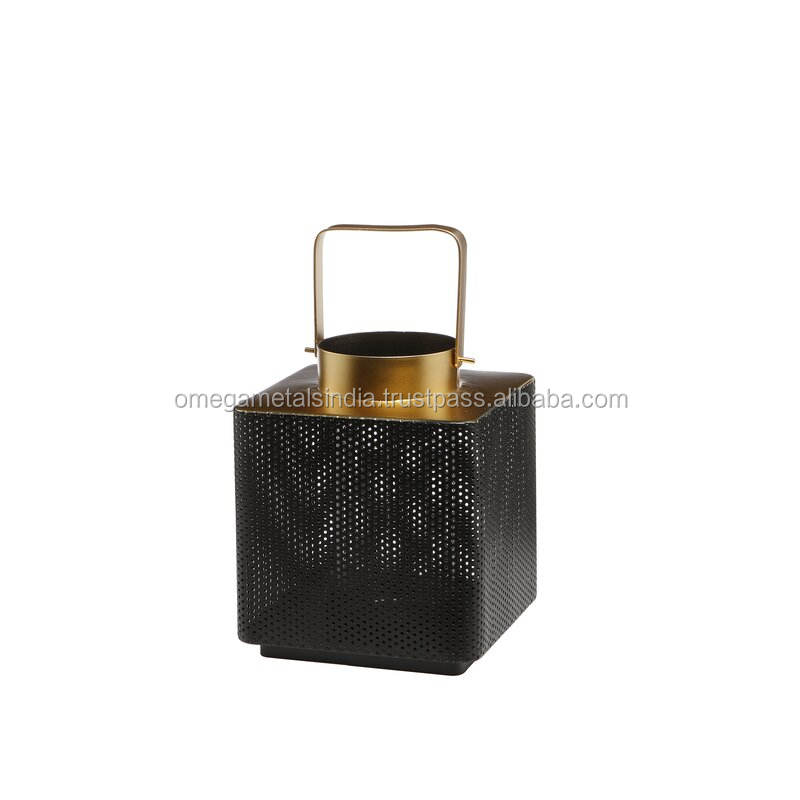 Black Decorative Lantern Handcrafted Lantern with Gold Handles for Home Decor Wholesale Exporter