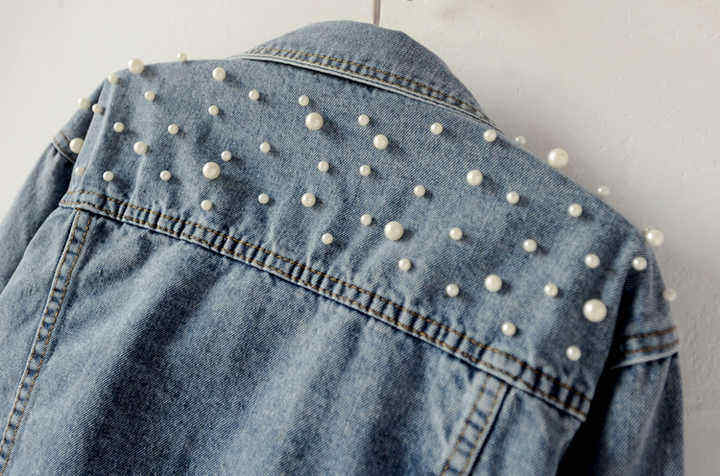 Black Denim Jacket with Stylish Patchwork Pattern Pearl Jean Jackets Blue Jean Women Denim Jacket