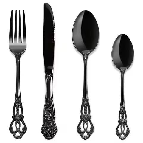 Black Design Matte Finished Cutlery Set Premium Stainless Steel Flatware For Dining Table Kitchen Parties And Daily Use