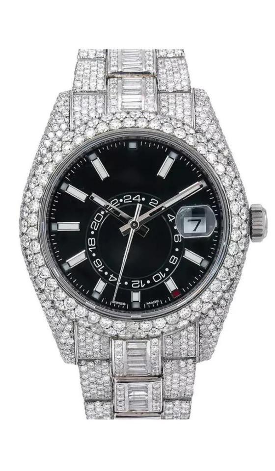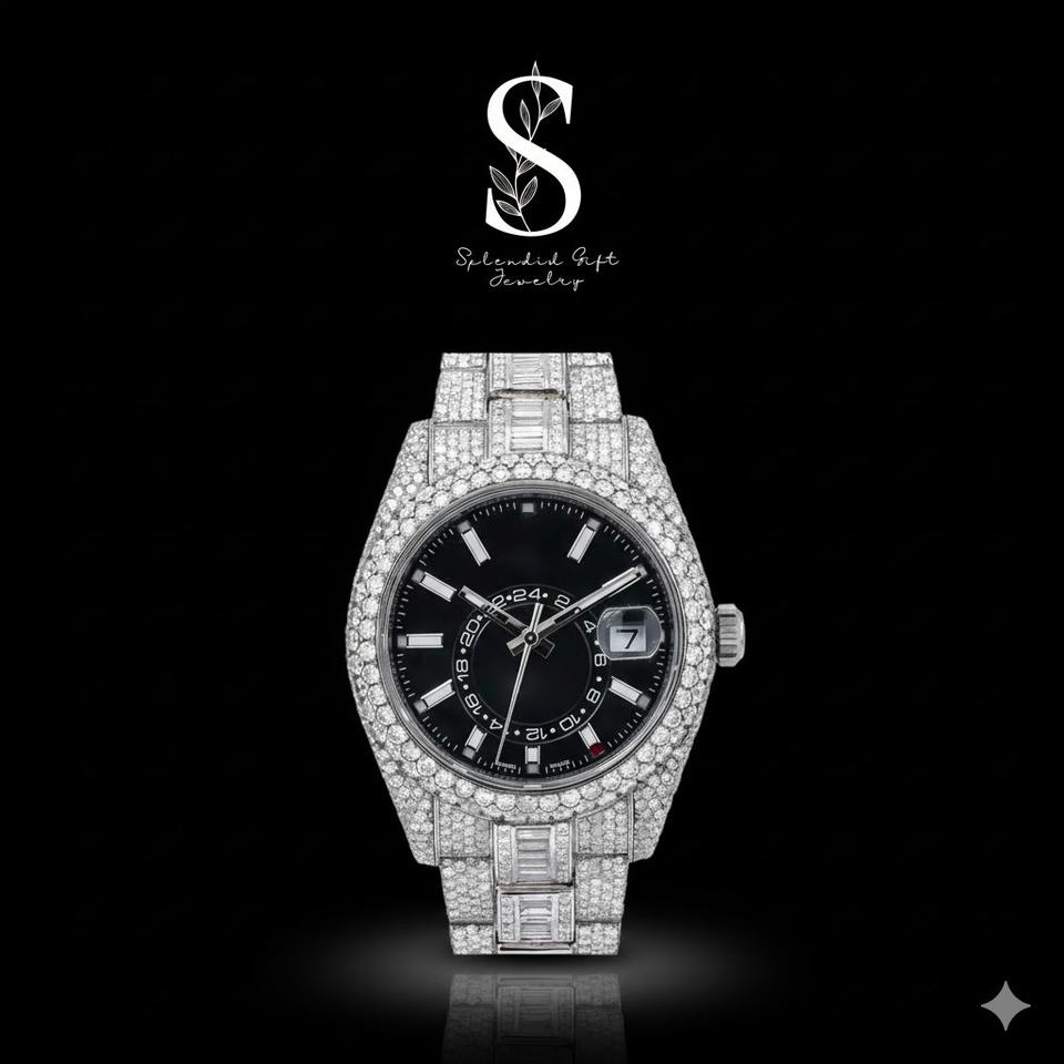Black Dial Circular Swiss Automatic Mover Moissanite Diamond Quartz Watch Luxury Iced Out Stainless Steel Automatic Wrist Watch