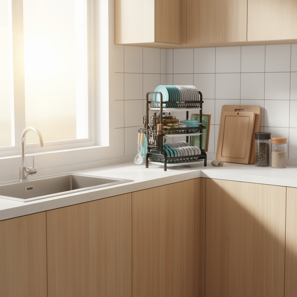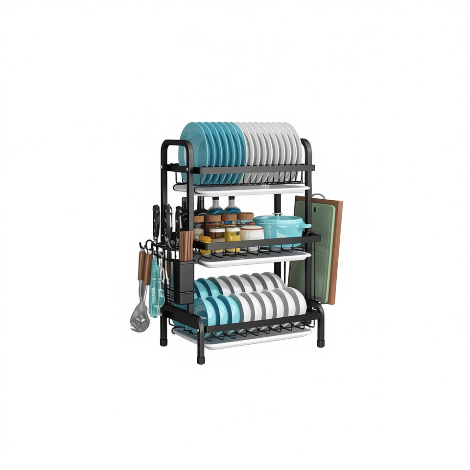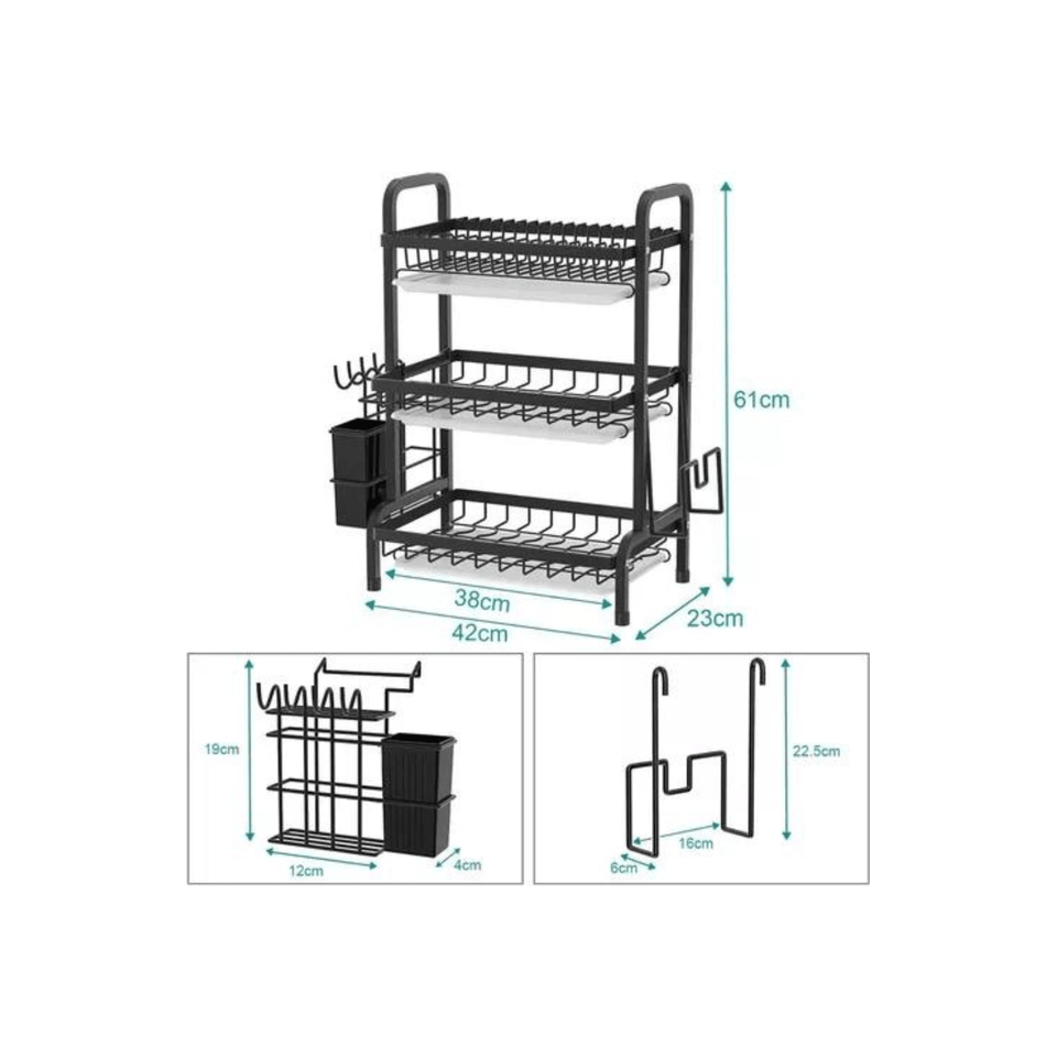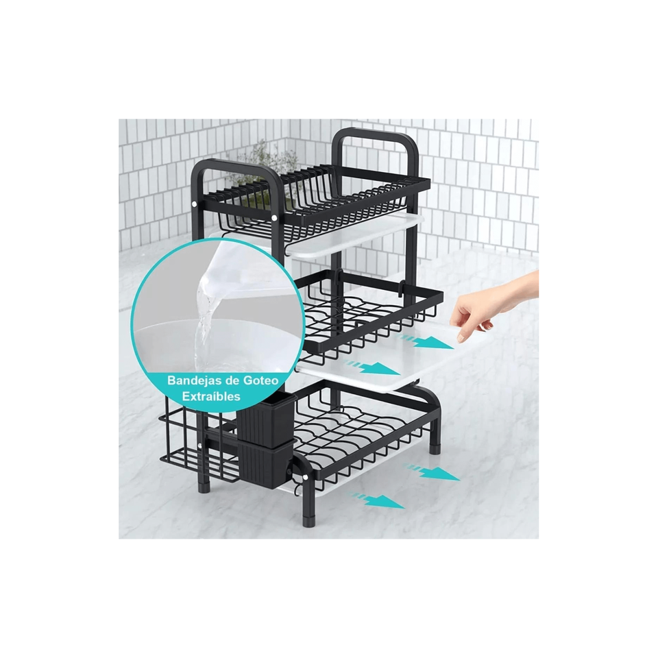 Wei Hang 3-Tier Black Dish Drying Rack Drain Board Stainless Steel Kitchen Organizer Space-Saving Design Mexico-Made Color Box