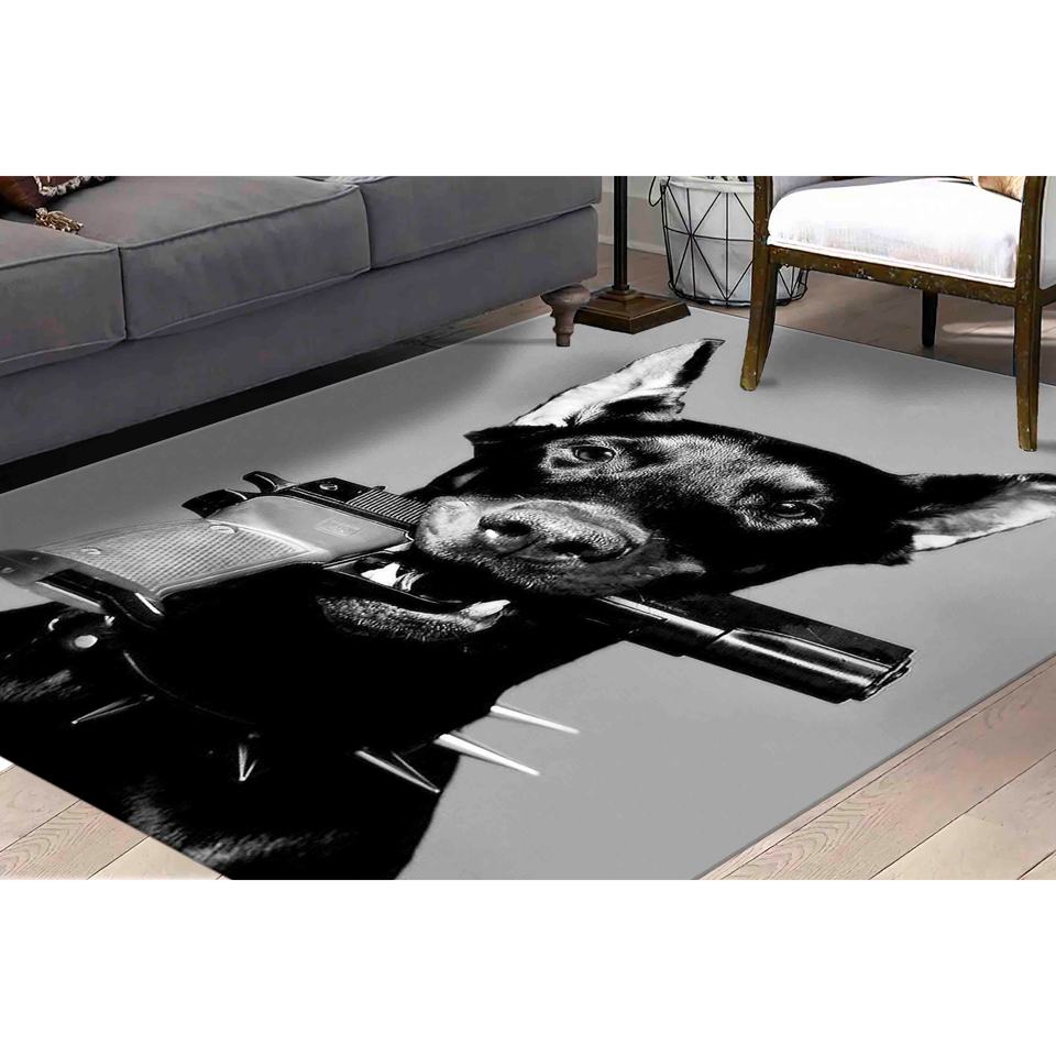 Black Dog And Gun Rug, Gun Rug, Step Rug, Printed Rug,Chenille Rug