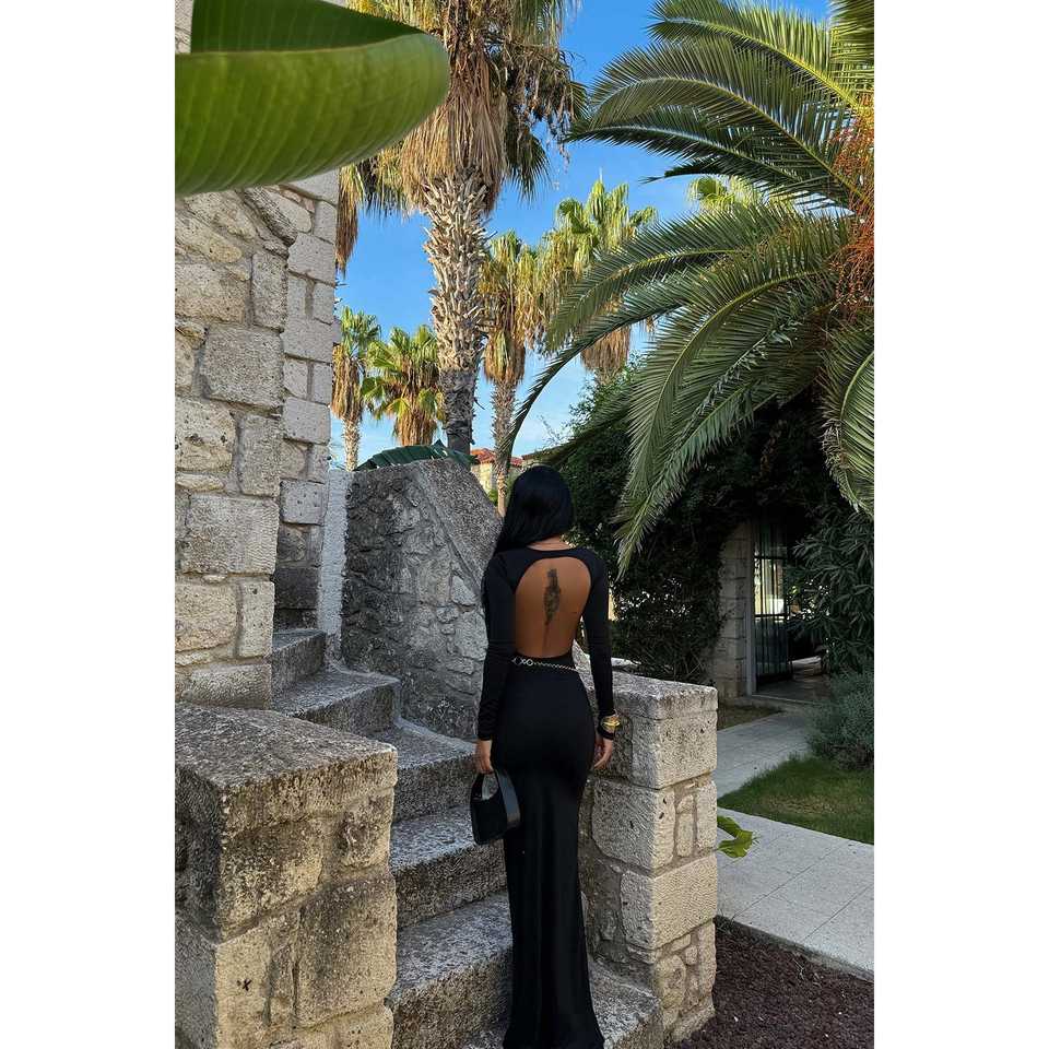 Black Doss Long Ball Gown Evening Dress Backless Design for Formal Occasions and Parties XS Size Floor-Length