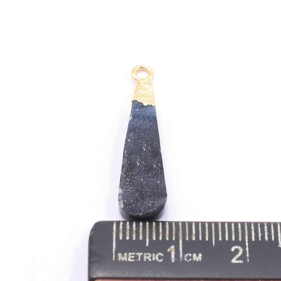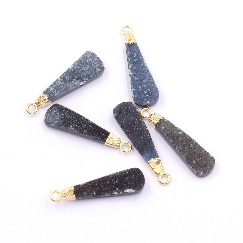 Black Druzy Pendant 28-30mm Brass Elongated Drop Shape Gold-Plated Natural Gemstone Jewelry Findings