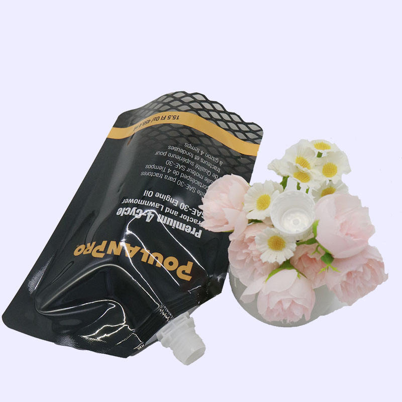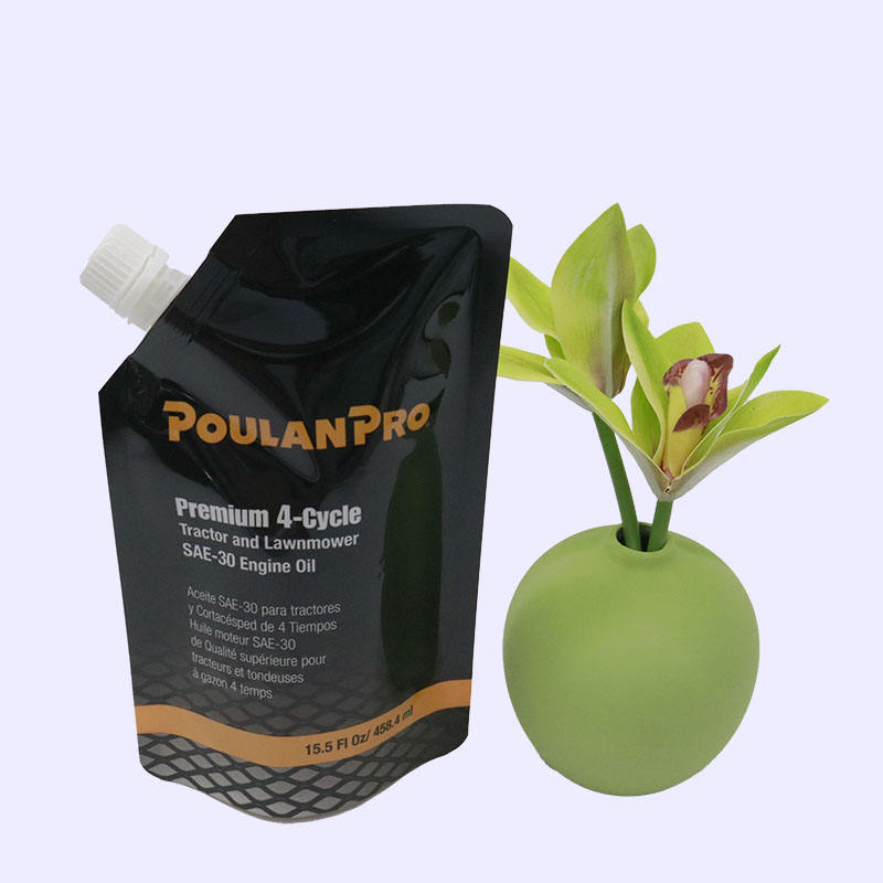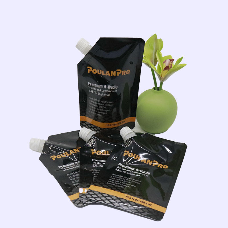 Black Eco Friendly Premium Recyclable Gravure Printed Chemical 4-Cycle Tractor Lawnmower SAE-30 Engine Oil PE Bag Spout Pouch